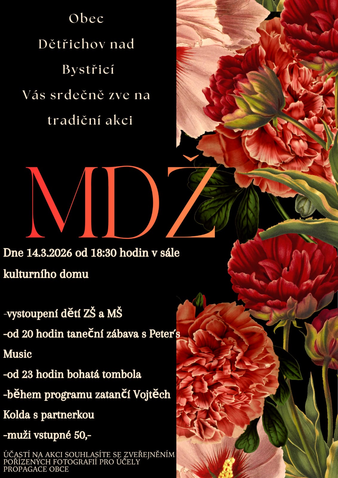 Tradiční akce k MDŽ 14.3.2026 od 18:30 hodin