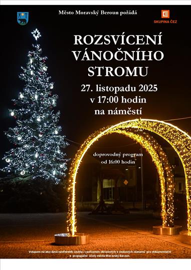 Město Moravský Beroun vás srdečně zve na slavnostní rozsvícení vánočního stromu. Akce se uskuteční 27. listopadu 2025 od 17:00 hodin na náměstí. Již od 16:00 hodin bude probíhat doprovodný program, který potěší všechny návštěvníky. Přijďte si užít příjemnou atmosféru a společně oslavit příchod vánočního období.